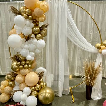 Includes full balloon arches or deluxe backdrop setups with multiple Chiara stands, layered garlands, and accent décor.